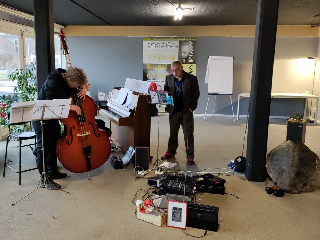 Deze zondagmiddag een hele fraaie, intieme, uitvoering van de Amygdala Sonates/de Rode Bloem gecomponeerd door Hansko Visser op tekst van Vsevolod Garsjin. Het ging om acht sonates over ‘stoornissen’ ingebed in een verhaal over een aardige man die probeert het gekkenhuis te overleven. Visser trad op samen met Reinier van Houdt (piano), Bas Alblas (contrabas) en een tapemachine. Er volgen meerdere uitvoeringen elders als opmaat naar een cd-registratie.